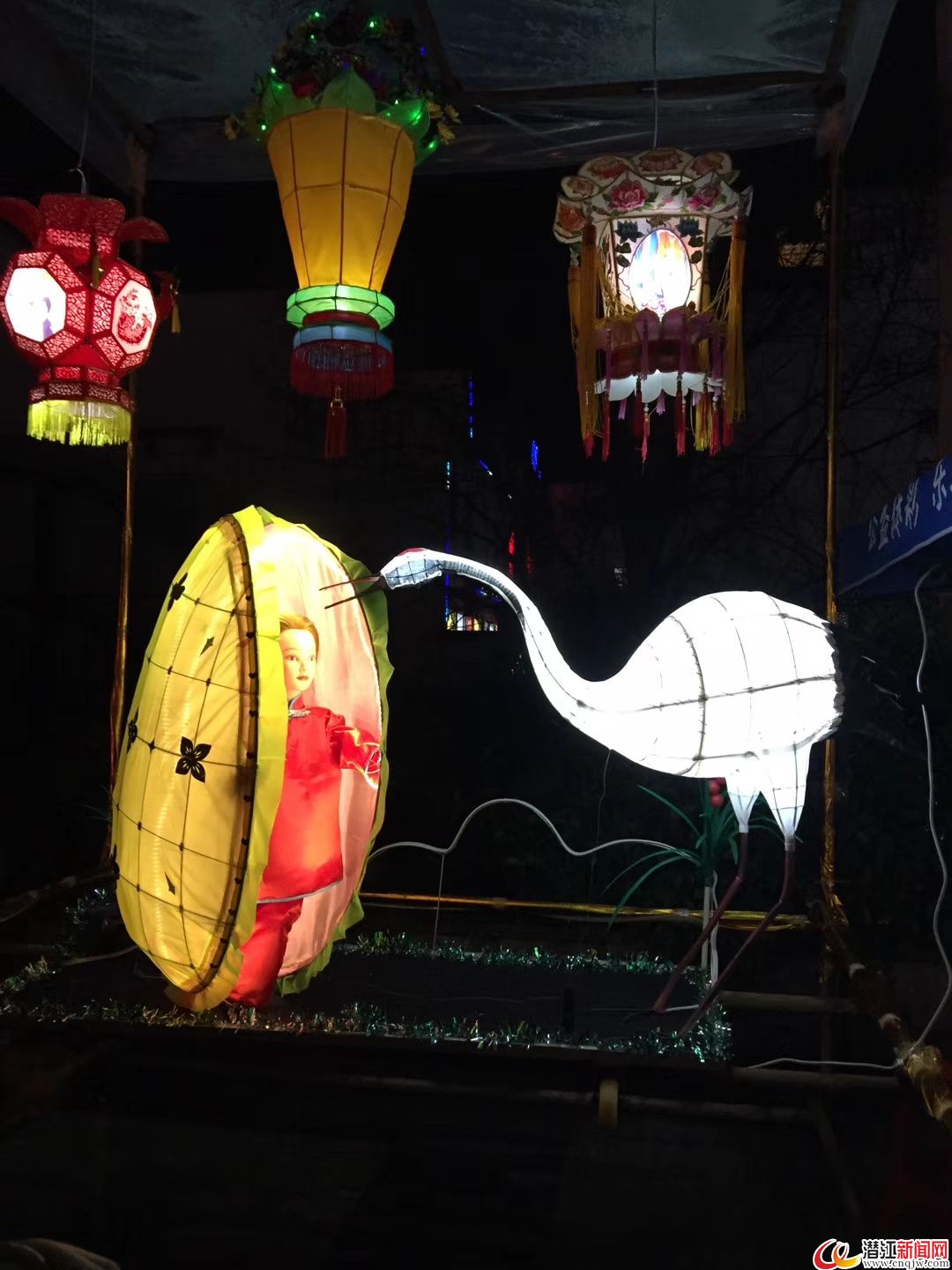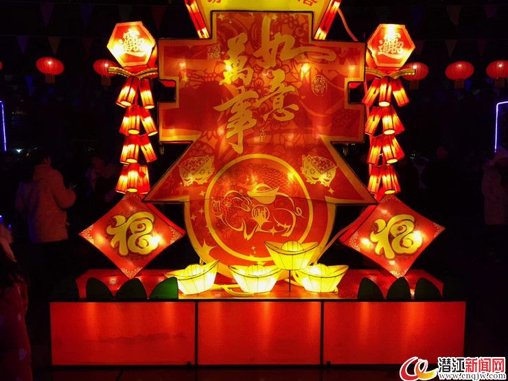 记者在梅苑南广场看到,这里热闹非凡,各具特色的主题花灯在这里璀璨绽放。此次展出的花灯样式繁多,造型美观、新颖别致:有以农家乐为背景的猪八戒乐园、活灵活现的龙虾走马灯、诚信经营的张飞卖肉、反腐倡廉的拍虎苍蝇、喜生二胎的麒麟送子,还有栩栩如生的画墙会和红色革命文化的红色潜江等各式花灯。