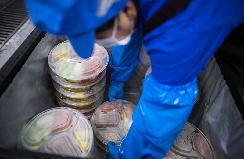 送去消毒水、橡胶手套、防护服、饭菜