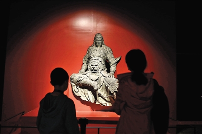 这是在陕西历史博物馆展出的唐三彩骆驼载乐俑(3月25日摄)。新华社记者 李一博 摄