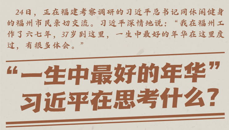 习近平24日在福州考察调研。在福州工作期间习近平领导实施了福州市“3820”工程,勾画跨世纪福州现代化建设宏伟蓝图。在福山郊野公园,习近平乘坐电瓶车实地了解郊野福道风貌,他登上观景平台,远眺福州新貌,听取城市生态公园规划建设、城市水系综合治理情况汇报。市民们看到总书记来了,争相围拢过来。习近平指出,建设好管理好一座城市,要把菜篮子、人居环境、城市空间等工作放到重要位置切实抓好。福州是有福之州,生态条件得天独厚,希望继续把这座海滨城市、山水城市建设得更加美好,更好造福人民群众。