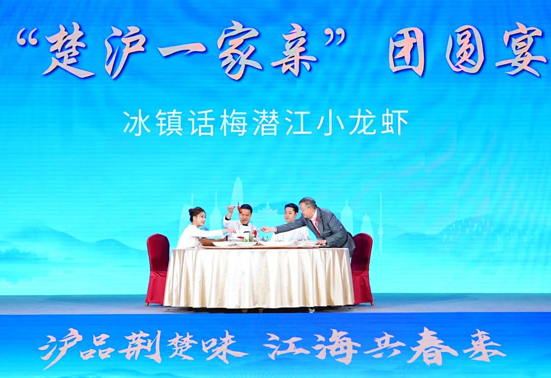 潜江是“中国小龙虾之乡”,此次“楚沪一家亲”团圆宴展示中,用话梅、柠檬、陈皮等浸泡,冰爽鲜美,口感Q弹的“冰镇话梅潜江小龙虾”让上海市民领略到了湖北地标的独特风味。