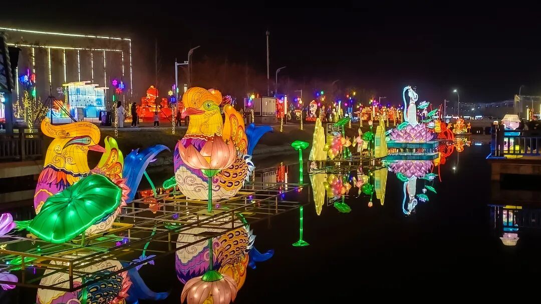 踏入灯会现场,仿佛穿越到了一个光与影交织的梦幻世界,升腾的年味、民俗味扑面而来。今年,共有来自各地各部门和企业的1000余人投身于花灯制作,展出近百组主题花灯、300余组装饰彩灯。这些花灯涵盖了金蛇吐瑞、龙凤呈祥、年年有余等传统吉祥图案,并融入潜江地方特色的红色拖船埠、非遗浩口、竹根滩海马等主题。这些花灯依据地形排布,错落有致,不仅有陆地灯组,还有水上灯组,为游客带来了别样的观赏体验。