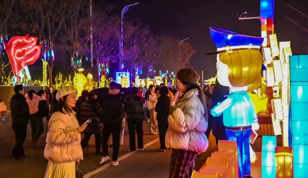 沉浸式畅游灯会,仿若置身于梦开始的地方。亮灯后,慕名而来的游客络绎不绝,大家或合影留念,或拍摄小视频上传各社交平台,向世界宣传着潜江。