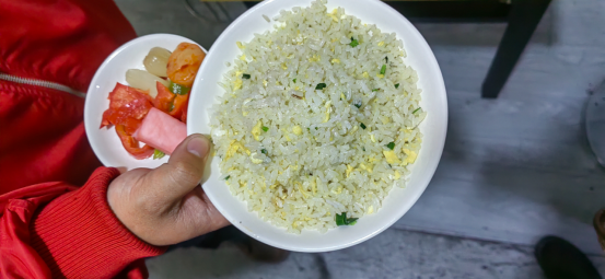 “我们家的炒饭,讲究的就是一个‘真’字。”李书泽一边翻炒一边说道。他动作麻利而沉稳,仿佛这二十多年的时光都凝聚在了这一锅花饭里。从最初的拖板车卖炒饭,到如今有了自己的小店,李书泽和妻子用一碗碗花饭撑起了一个家,也温暖了无数夜归人的胃。