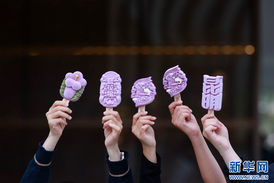 蓝花楹文创冰淇淋(5月1日摄)。新华网发(五华区人民政府新闻办供图)