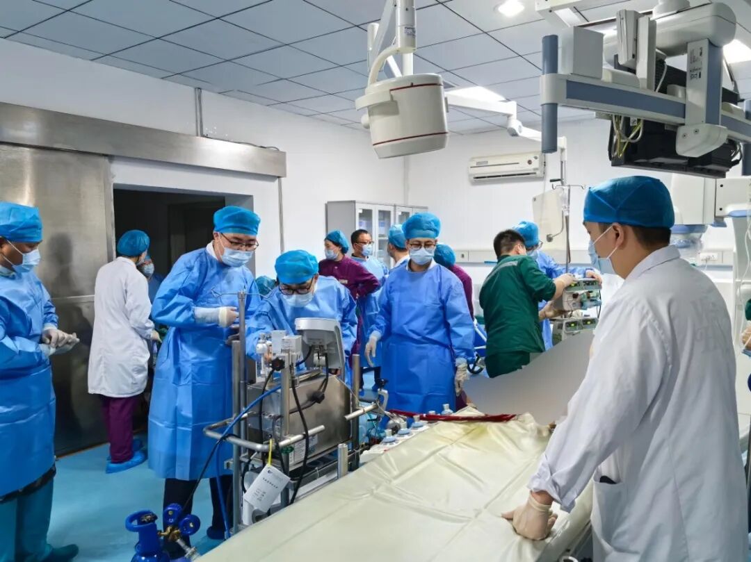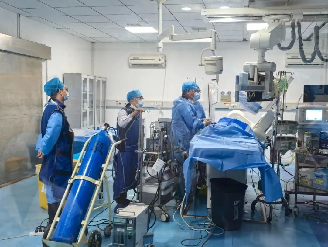 心肺被ECMO暂时接管,真正的病因必须根治!待ECMO平稳运行后,患者被安全转运至介入导管室。在心血管内科兰江主任团队的精准操作下,在ECMO全程保障的基础上,迅速通过介入手术疏通了患者堵塞的“元凶”血管并植入支架,血流瞬间汹涌回归,心肌细胞重获生机!