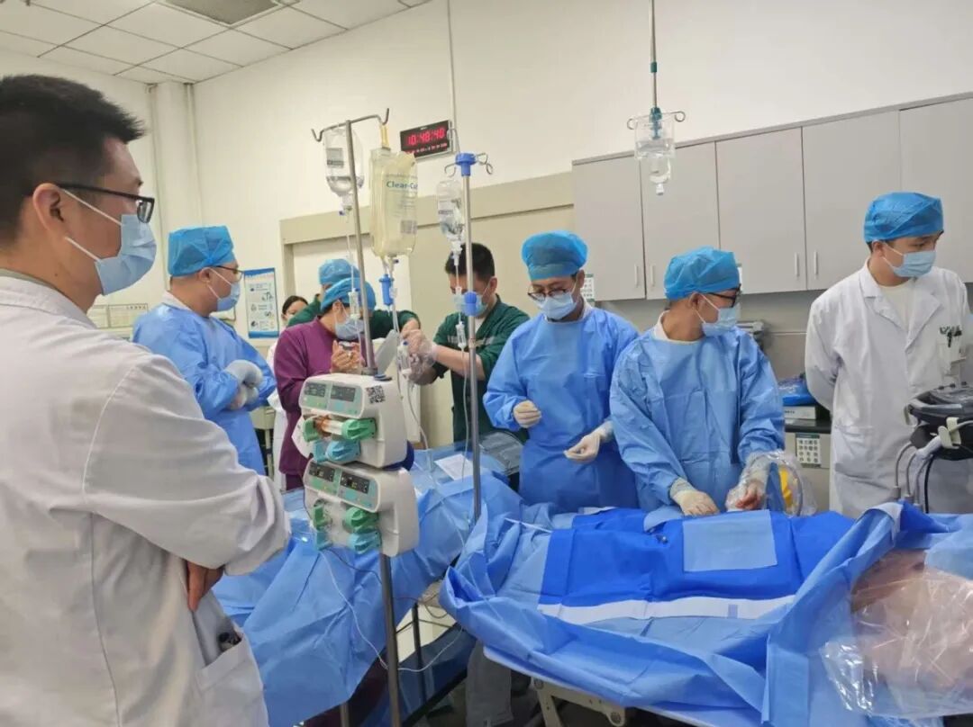 由于患者心脏电活动极不稳定,短短数分钟内,发生多次室颤!虽然通过反复电击和药物艰难地维持住心跳,但整体状况持续恶化。病魔宛如洪水猛兽,要将生命吞噬。在这危急关头,急诊医学科主任张缘园果断决策:启用最高级别生命支持——ECMO,为后续介入手术赢得时间和机会!
