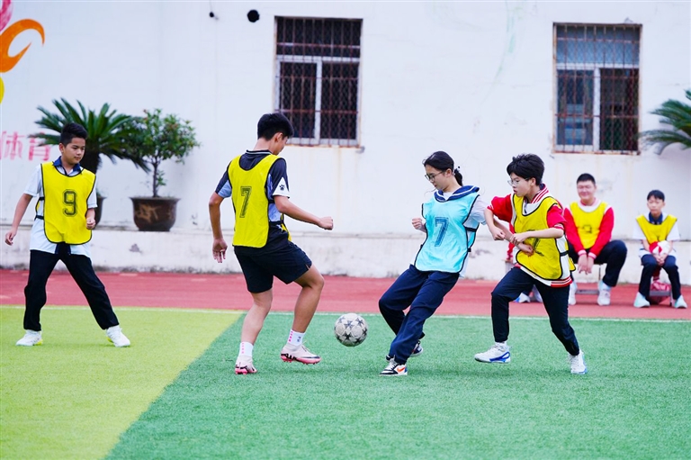“初中阶段,我们要把‘兴趣’变成‘基本功’。系统化的竞赛体系是筑基的关键。”园林二中副校长蔡高华站在操场边,看着孩子们在比赛中互相提醒、配合。学校每周都有足球社团活动,每学期都举办校级足球联赛,让孩子在兼具趣味和竞技的比赛中成长。这既巩固了他们的基本功,也为有潜力的孩子向更专业方向发展奠定了基础,让每个孩子都能感受到足球带来的快乐与成就感。