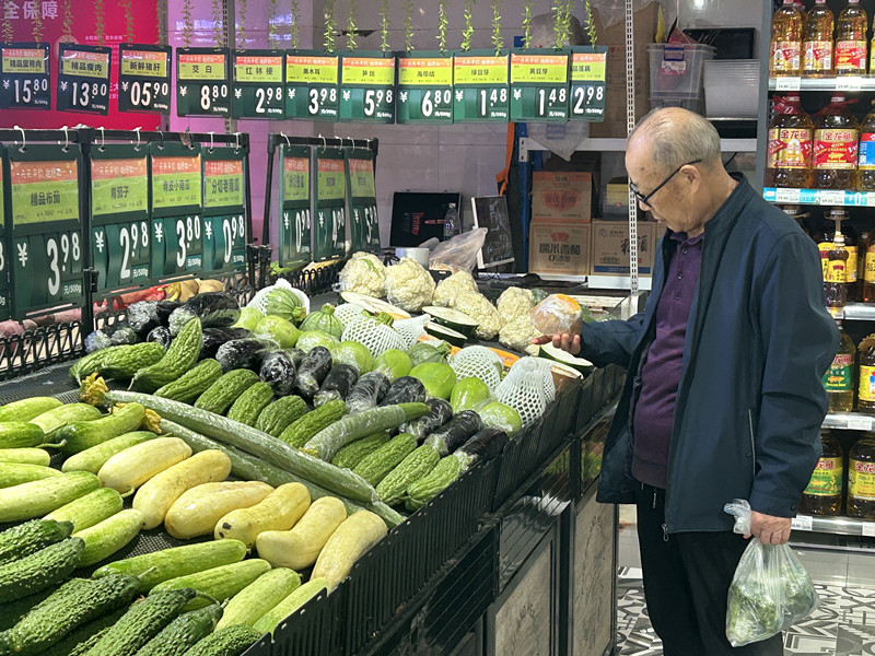 在河中和超市蔬菜专区,翠绿的上海青、鲜嫩的菠菜、饱满的莲藕等秋日蔬菜整齐码放,货架前市民选购络绎不绝。“为应对‘双节’客流高峰,我们提前加大进货量,严格执行每日鲜度检查,还会根据销售情况及时补货,全力保障供应不断档。”该超市经理赵国雄介绍。