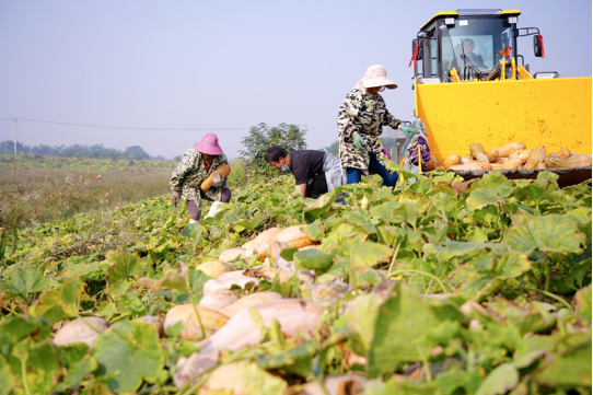 2018年,曹来军敏锐捕捉到这一痛点,抱着“闲置土地不能浪费”的想法试种南瓜,很快摸清农户核心诉求:“不是不愿种,是没人牵头解决‘种、收、卖’的连环难题。”为破解困局,他逐步搭建起“一站式”服务体系:主动承担收购代办角色,承诺“有瓜就收、绝不压价”,用诚信攒下首批信任;针对采收标准混乱、损耗率高的问题,组建专业采收队,立下“剪瓜齐头、不留长藤”的规矩;面对选种难题,统一提供优质种子,让农户告别“盲目种植”。