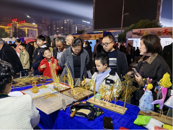 非遗展示堪称潜江展区的“流量密码”。皮影戏幕布前,细腻传神的人物造型与跌宕起伏的故事情节吸引观众沉浸式体验古老艺术魅力;非遗糖画展台前,手艺人以勺为笔、以糖为墨,转瞬勾勒出花鸟、生肖等精美图案,既让孩子们驻足惊叹,也唤醒了成年人的童年记忆。