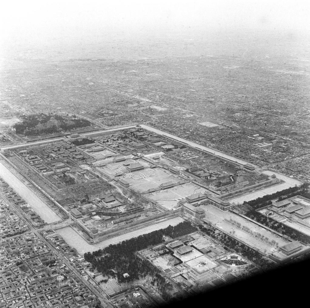 图为在飞机上俯视故宫(1952年3月8日摄)。新华社记者 齐观山 摄