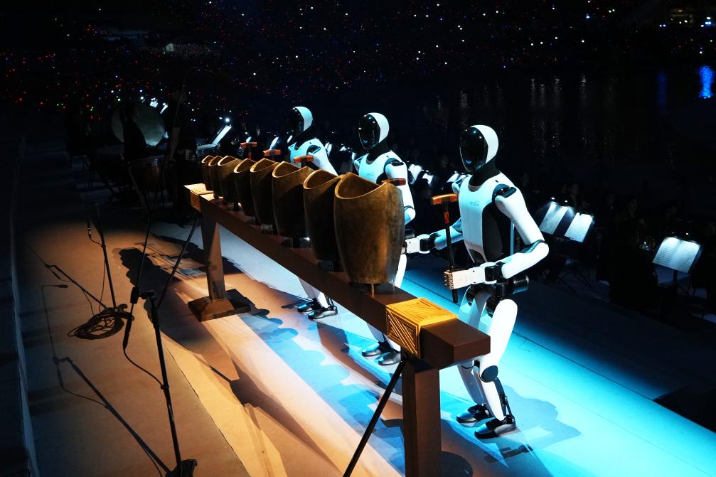 “千年前的礼制,绕梁三日不绝于耳。”开幕式音乐总设计师舒楠介绍道,“处于科技前沿的机器人与几千年前出土的青铜句鑃,形成了跨越千年的和鸣。”