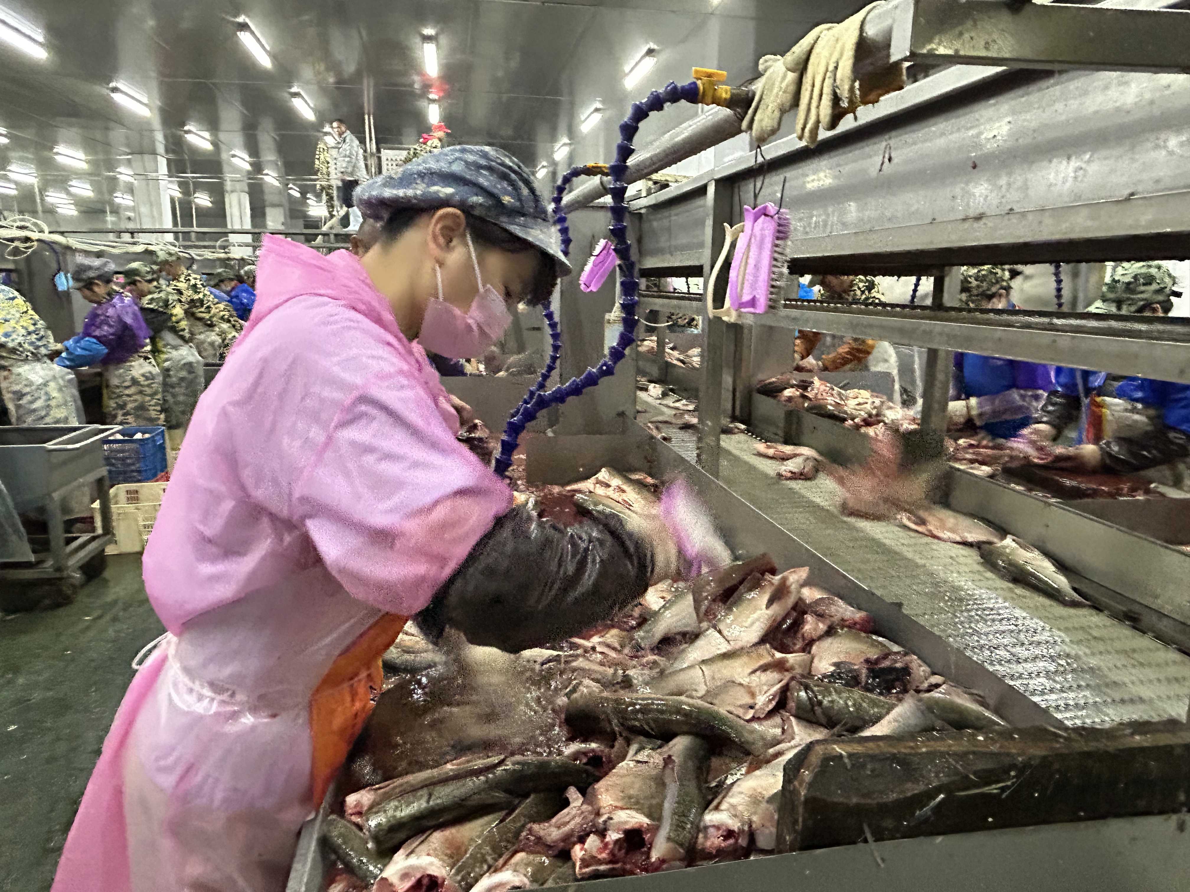 “为应对四季度订单高峰,公司已全面进入‘冲刺模式’。”该公司销售经理周皓介绍,杀鱼车间每年9月至次年3月为生产旺季,目前生产线正满负荷运转,每日鲜鱼处理量达200吨,仅这几个月就能完成1.7万吨销量,年收益约2亿元。同时,还新增了2条生产线,全力满足市场需求,确保订单按时交付。车间内,机器的轰鸣声与工人们专注的身影交织,勾勒出一幅争分夺秒的冲刺画卷。