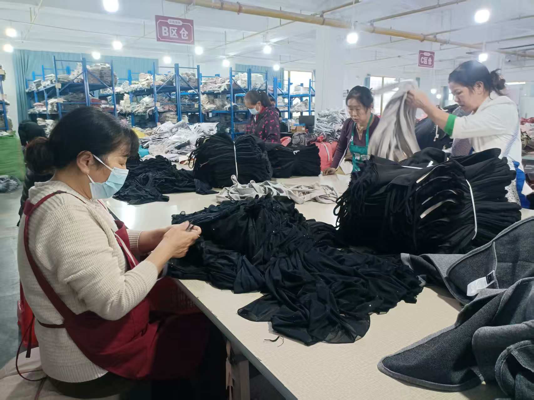 走进生产车间,2500平方米的厂房宽敞明亮,最新款的自动裁床、先进的缝纫加工设备有序排列,百余名员工正在各自的岗位上忙碌着。这家集产品开发、生产、销售于一体的制衣企业,主营时尚女装、潮流卫衣、风衣外套、长裤等全品类服装系列。