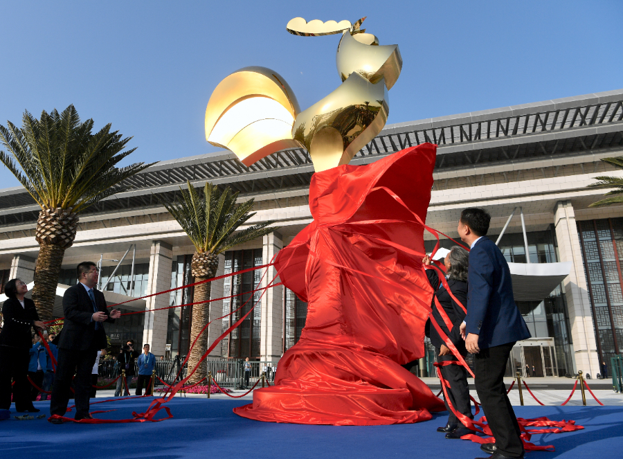 第28届金鸡百花电影节金鸡雕塑揭幕仪式。新华社记者 姜克红 摄