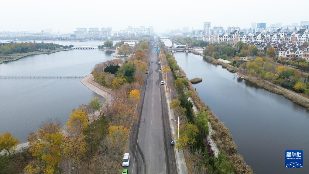 这是11月12日拍摄的东营明潭公园(无人机照片)。新华社记者 朱峥 摄
