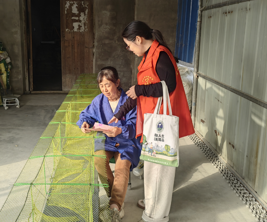 近日,竹根滩镇组织志愿者开展“禁毒宣传进万家”入户走访活动,将禁毒知识送到群联村村民身边。