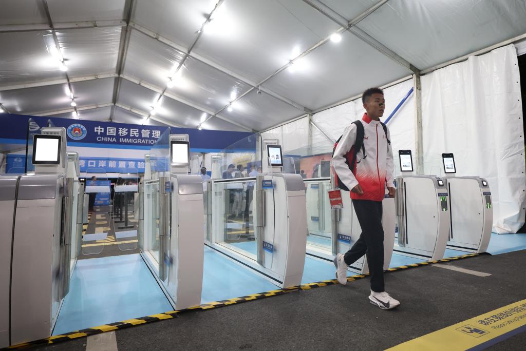 11月15日,全运会历史上首个跨境马拉松赛事开赛前,参赛选手在深圳湾口岸前置查验区完成查验手续。本次赛事通过智慧管理体系,实现了无感通关。