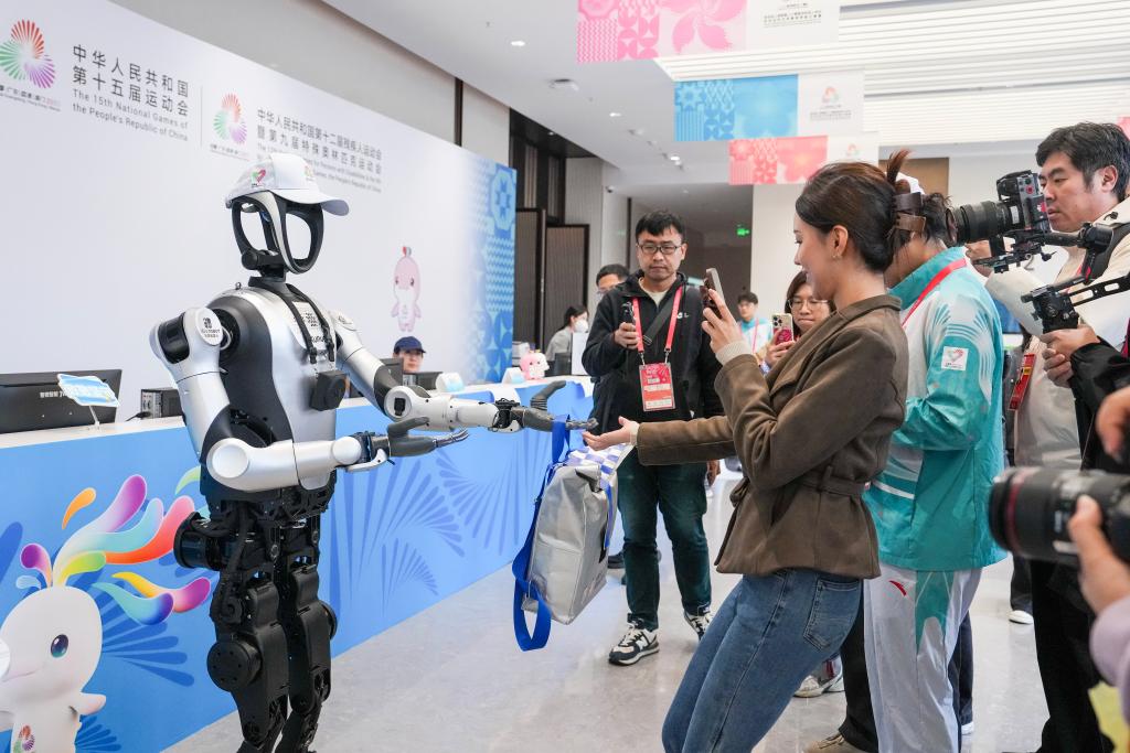 11月9日,机器人在第十五届全国运动会开幕式现场表演。