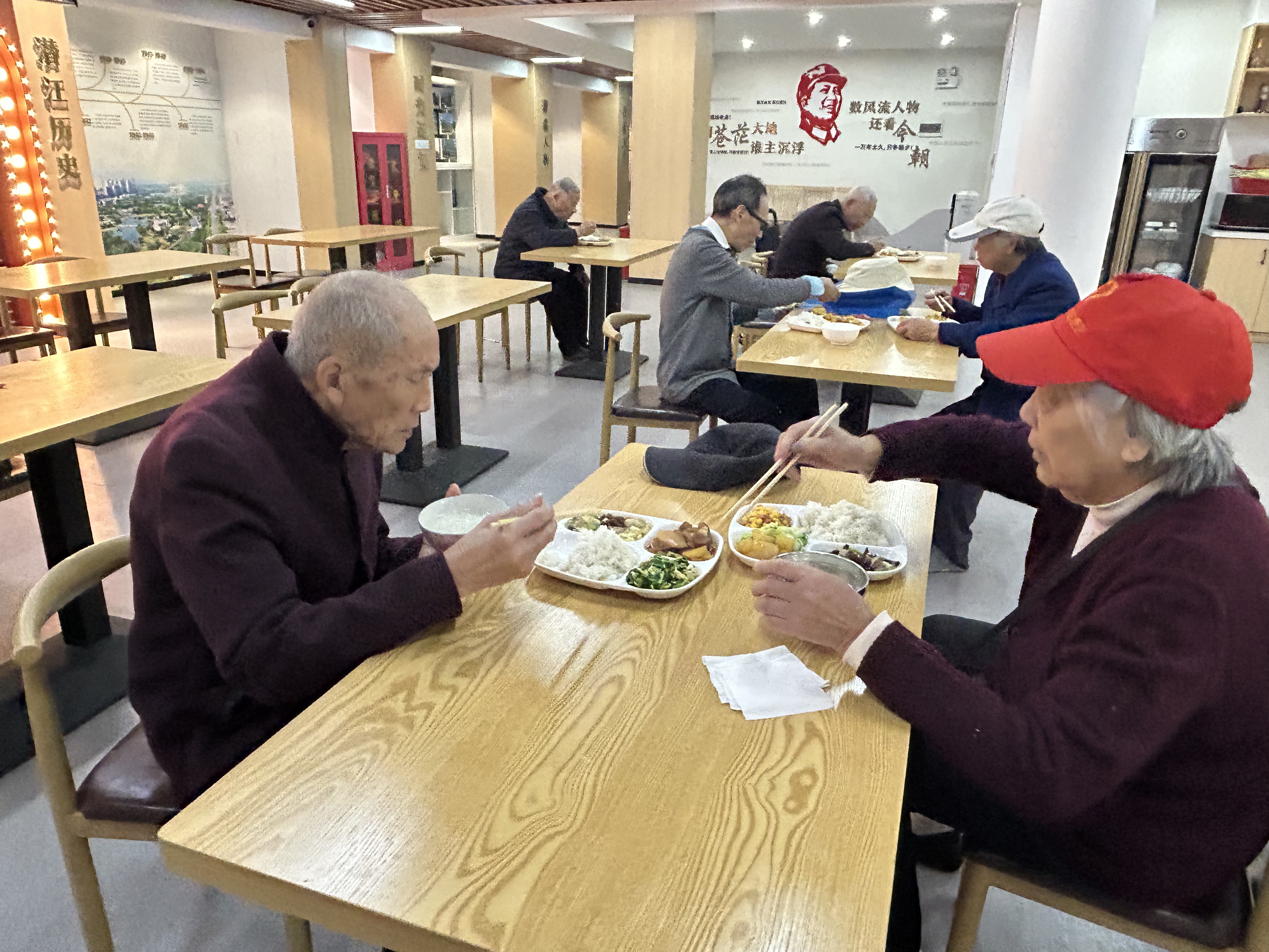 临近中午,助餐区飘来阵阵饭菜香。工作人员正忙碌地将精心准备的午餐分装、摆放。菜单充分考虑老年人的营养需求和身体特点,注重荤素搭配、软烂易嚼,让老人吃得既美味又健康。一餐热饭,不仅解决了“吃饭难”问题,更温暖了老人们的心,让日常用餐从“将就”变为“讲究”。