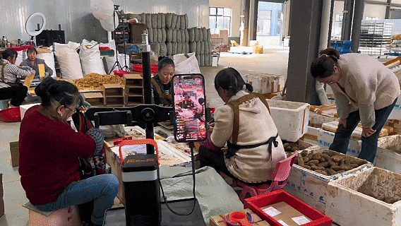 只见画面中,一位种植户正在田里刨挖。片刻,个个形似土豆的天麻接连出土,很快在田埂边堆起了小山,直播间的互动热情瞬间被点燃。