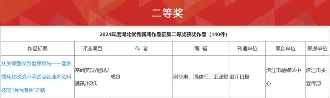 这9件获奖作品覆盖报纸消息、评论和电视新闻专题、新媒体消息等多个类别。其中,《“一季有价”不如“四季有虾”——潜江早春“虾事”观察》(作者:张芷龙、成妍,编辑:彭梦宁、苏杏、赵天祥)《破“冰”!起虾!我市冬季池塘养虾取得新突破》(作者:张芷龙,编辑:潘建军、胡敏)分获报纸通讯和电视新闻专题类一等奖;《从关停整改到世界领先——国家循环化改造示范试点企业永绍科技的“治污淘金”之路》(作者:成妍,编辑:谢华果、潘建军、王亚堂)获评报纸通讯类二等奖;《纺织服装产业从“制造”走向“智造”》(作者:罗珊珊,编辑:彭梦宁、苏杏、王亚堂)《“烧烤”,900度!》(作者:王陶、夏冬、朱芳芳、张元恺、董雪,编辑:夏冬)《从品质到品牌 从独有到公用——“潜江龙虾”区域公用品牌建设综述》(作者:罗珊珊,编辑:彭梦宁、刘大琼、陈雅乔)《今冬,“潜江龙虾”首次大规模开捕》(作者:潘建军、成妍、关洪磊,编辑:谢华果、王陶、赵天祥、杨红、熊畅)《让“实在”成为潜江龙虾“流量”底色》(作者:潘建军,编辑:谢华果、潘建军、王亚堂)《裁剪天下衣——20万“潜江裁缝”的千亿产业之路》(作者:成妍、洪林,编辑:谢华果、潘建军、王亚堂)等作品获报纸通讯、报纸评论、电视新闻专题以及新媒体消息类三等奖。