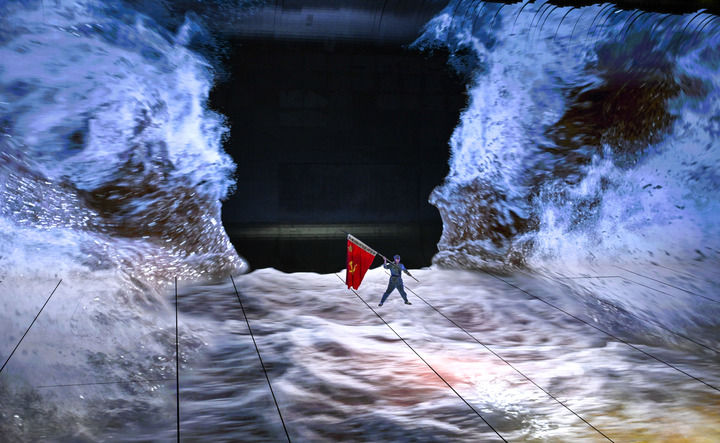 演员在贵州长征文化数字艺术馆进行《红飘带·伟大远征》表演(2025年11月15日摄)。新华社记者 杨文斌 摄