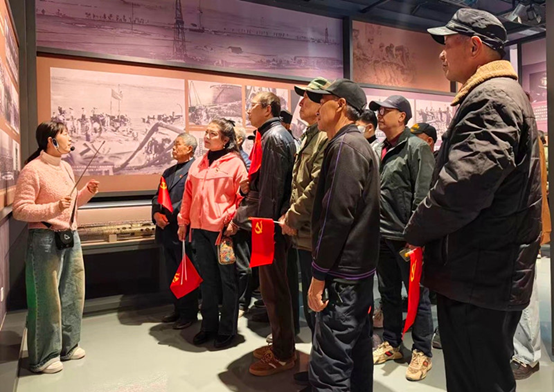 12月1日,广华寺街道向中社区组织党员代表、退休党支部书记等20余人,走进五七油田会战指挥部旧址开展红色教育活动。在讲解员带领下,大家通过翔实史料和生动故事,重温五七油田会战的艰苦历程与重大意义,深刻感悟“艰苦奋斗、无私奉献、团结协作、开拓创新”的会战精神内核。此次活动以实地研学为契机践行全会精神,引导党员在追忆峥嵘岁月中坚守初心使命,凝聚奋进力量。(潜江市融媒体中心记者 王宇杰 通讯员 宋鸿羽)