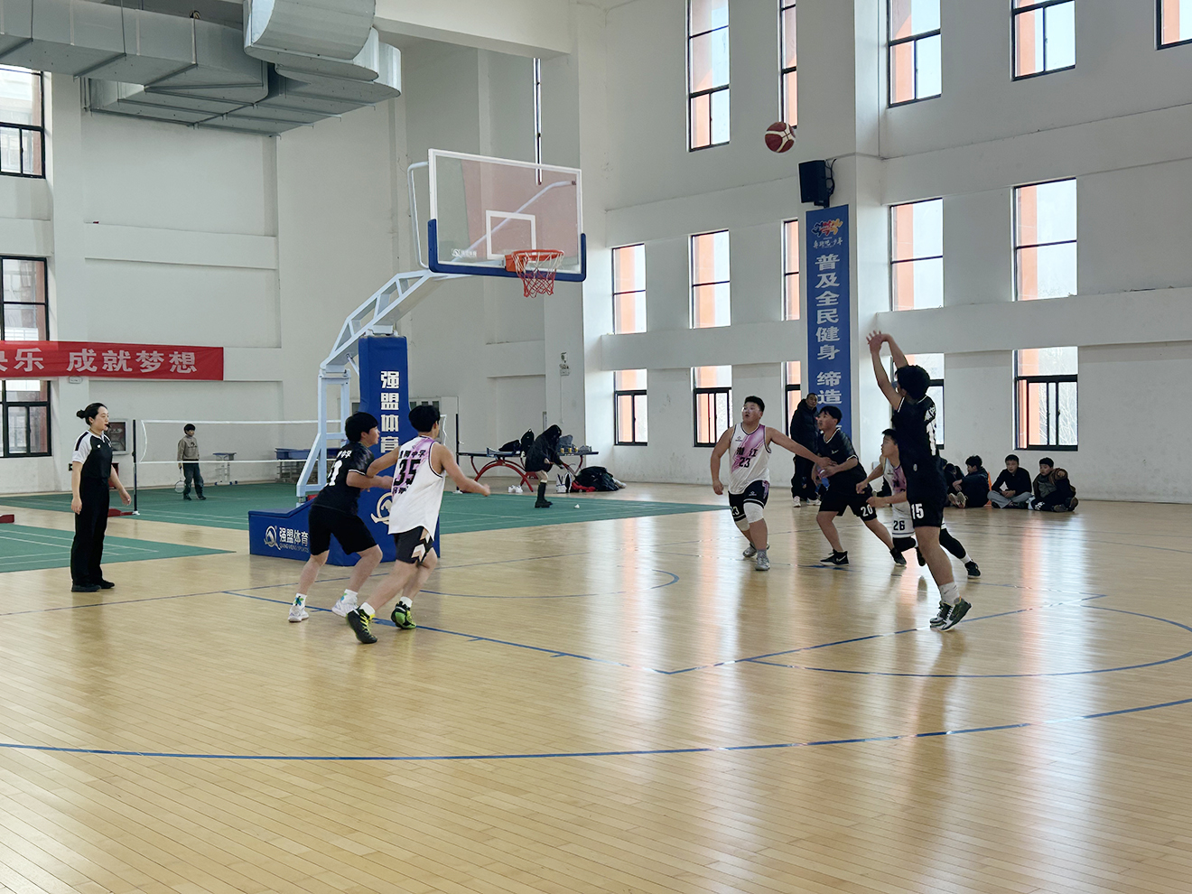 12月6日,曹禺中学泰丰校区体育馆内气氛火热,呐喊声、助威声不绝于耳。2025年湖北省“千师百校”体育支教行动中小学生篮球邀请赛(潜江站)在此激情开赛,来自全市各中小学的8支初中组、6支小学组队伍,共计300余名篮球小将齐聚一堂,在三人制篮球的赛场上展开激烈角逐与友好交流。