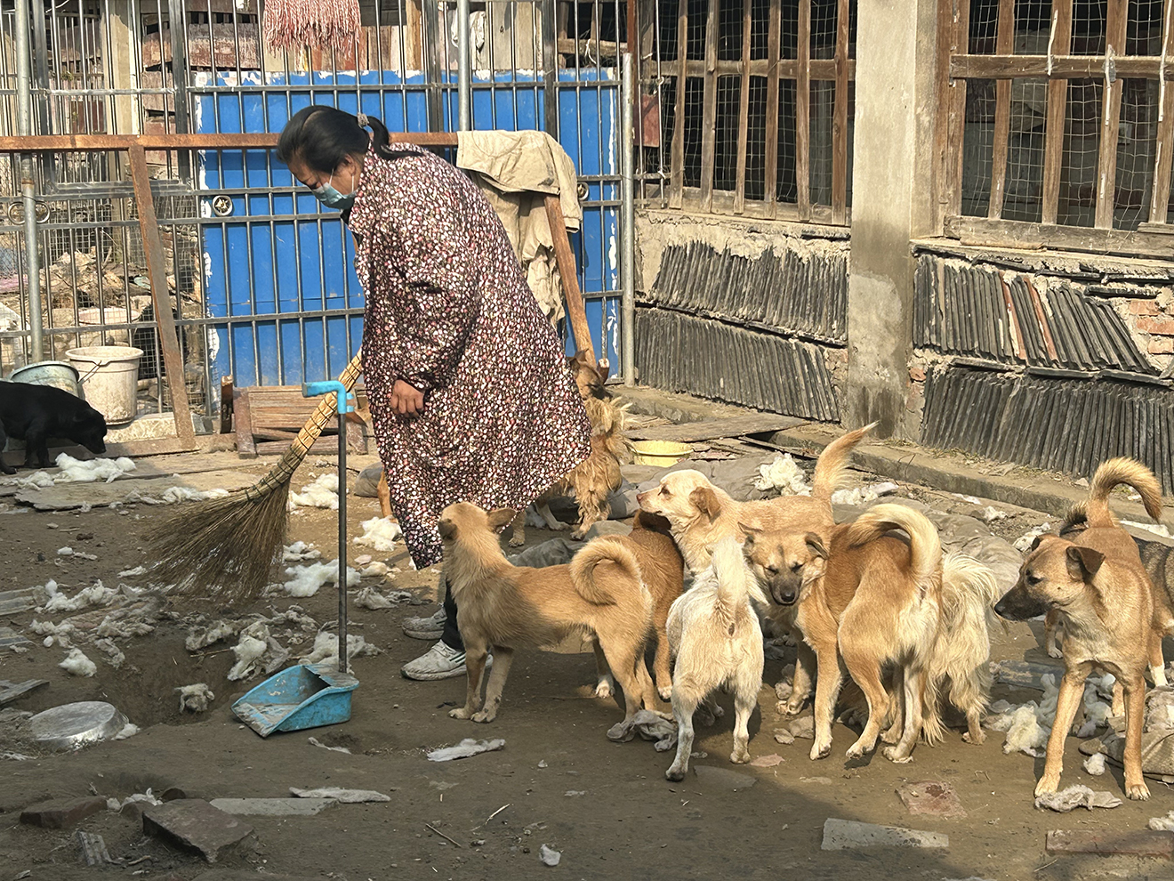 如今,这间民房的每个角落都刻满她与“家人们”相处的痕迹。她熟悉每只狗的名字、性格和来历。岁月在她脸上留下痕迹,可当她穿梭于犬舍之间,为它们备食、清扫、喂药时,眼中仍闪动着二十七年来不曾褪去的温柔。