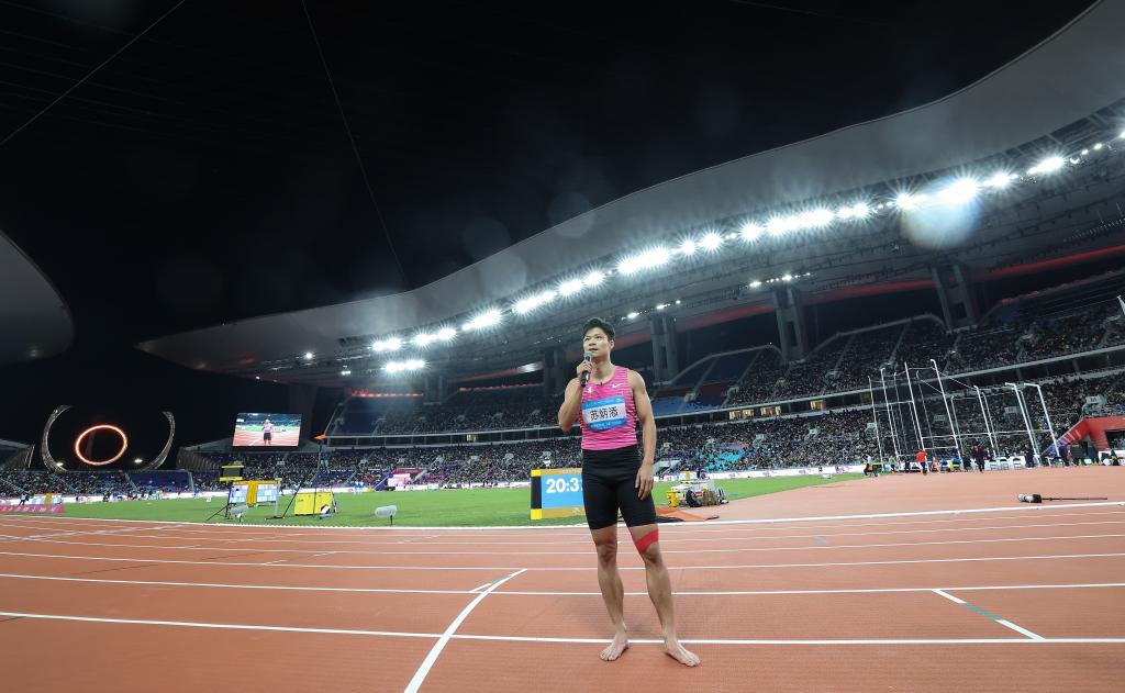 “突然间觉得腿上面有一点点反应,我就怕晚上见不到大家。我感觉我跑一枪是没有问题的,但是我害怕跑完预赛,我晚上跟大家见不到面。最重要的一点是能够在家门口完全健康地跑下来,我觉得就够了。”
