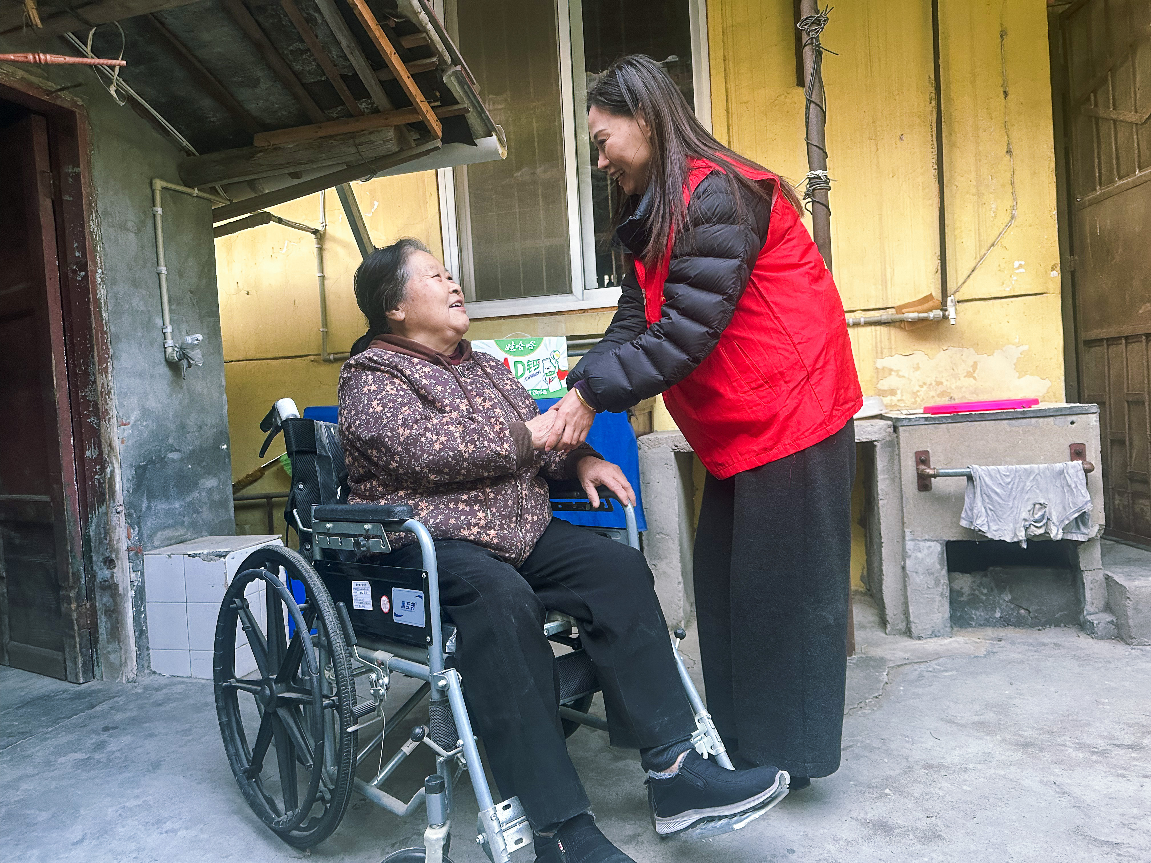 12月3日是国际残疾人日。当天上午,物探机关小区内,一阵暖心的敲门声打破了往日的宁静。建设街社区楚天舒阳光家园的志愿者们,将一台崭新的轮椅送到残疾人丁阿姨家中,以实际行动为她送上冬日里的温暖,也为她的日常生活带来了便利。(潜江市融媒体中心记者 杨靖 通讯员 郑先耀 摄)