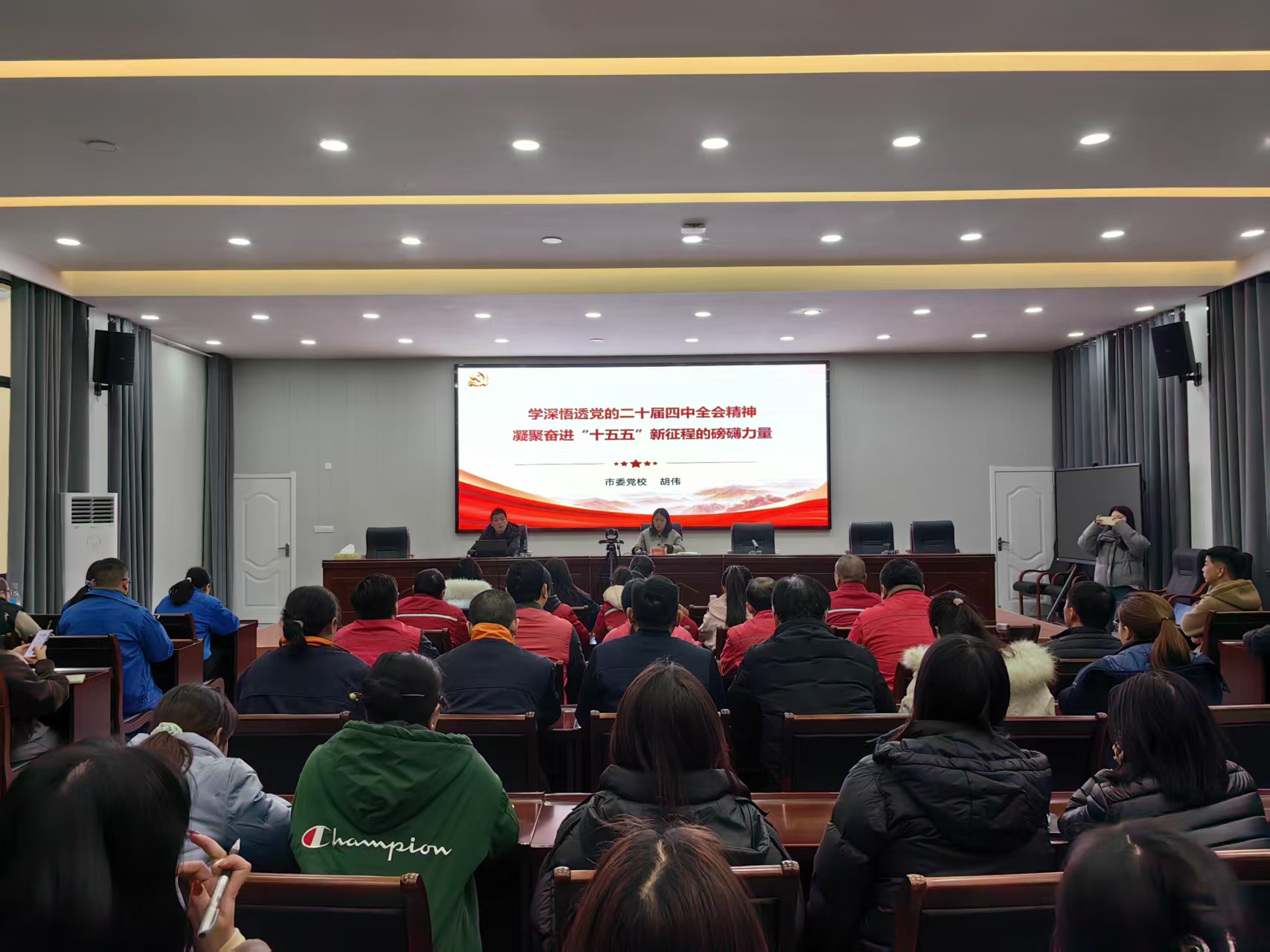 当日,市委专家宣讲团成员、市委党校副校长胡伟以“学深悟透党的二十届四中全会精神 凝聚奋进 ‘十五五’新征程的磅礴力量”为主题,从深入领会党的二十届四中全会的时代背景和重大意义、全面理解“十五五”时期经济社会发展的目标原则、系统把握“十五五”时期经济社会发展的战略要点、认真学习贯彻党的二十届四中全会精神的实践要求等四个方面,对全会精神进行了系统解读和深入宣讲。