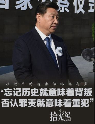 “忘记历史就意味着背叛”“任何人要否认南京大屠杀惨案这一事实,历史不会答应,30万无辜死难者的亡灵不会答应,13亿中国人民不会答应,世界上一切爱好和平与正义的人民都不会答应”。习近平总书记铿锵有力的话语,宣示中国人民牢记历史的坚定立场。