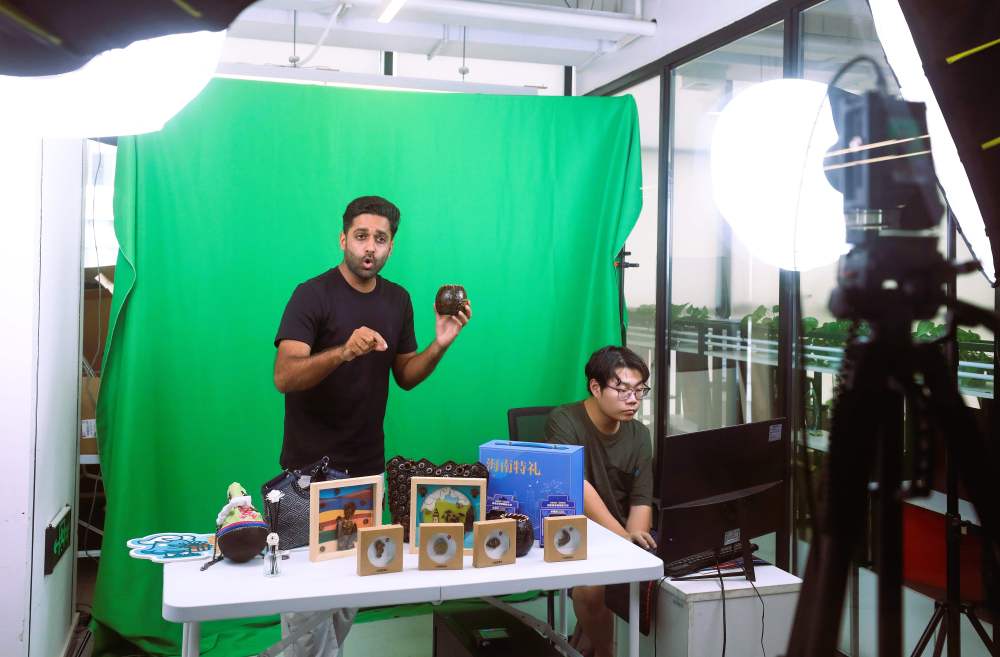 2025年9月22日,在海口复兴城互联网信息产业园,一名来自巴基斯坦的主播在直播间进行直播带货。新华社记者 郑悦 摄
