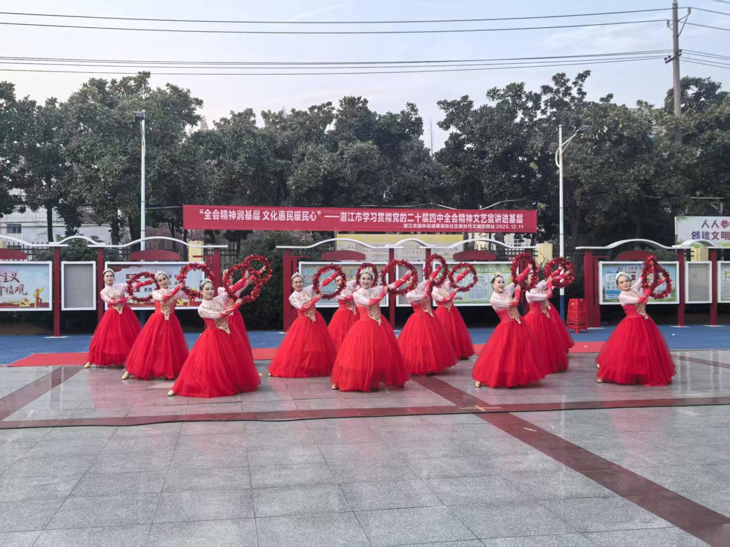 为深入学习宣传贯彻党的二十届四中全会精神,推动党的创新理论“飞入寻常百姓家”,2025年11月至12月,园林街道综合文化服务中心联合市文化和旅游局,联动建设街、南浦路、深河、马昌湖等多个社区,精心策划并成功举办了11场“全会精神润基层 文化惠民暖民心”主题文艺宣讲进基层活动,累计吸引辖区居民近2000人次观看,在寒冬里掀起了学习全会精神热潮。