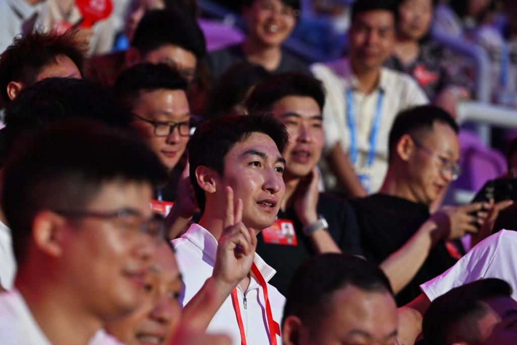 这是2025年11月9日,奥运冠军武大靖在第十五届全国运动会开幕式现场。新华社记者 杨冠宇 摄
