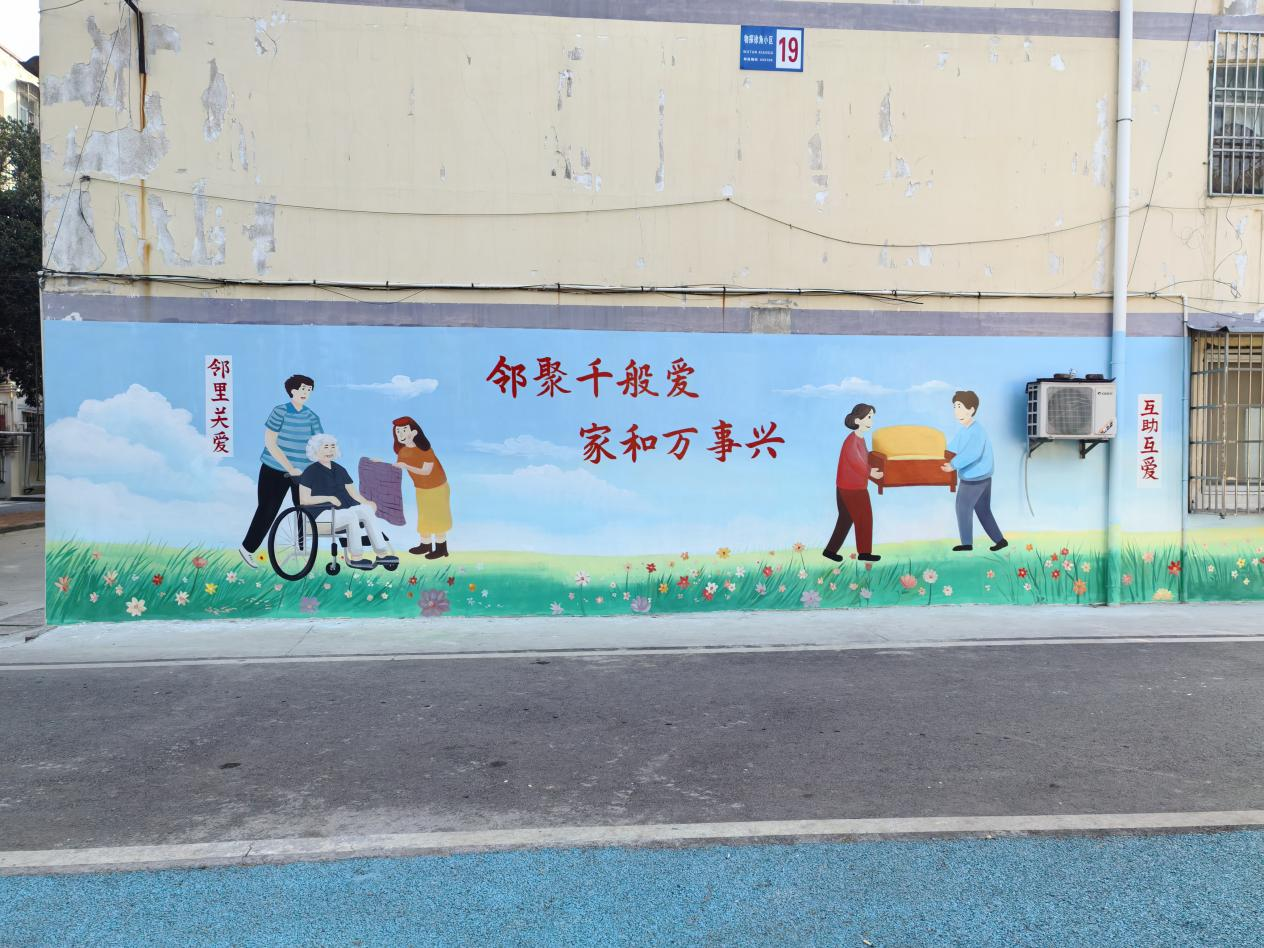 走进徐角小区,原本斑驳的围墙已变身“文化画廊”,手绘的文明标语和田园风光引得居民驻足拍照。“这是大家投票选的主题!”社区志愿者王大伯指着墙上的“邻里情”彩绘说,改造前社区征集了50多条建议,让老墙成了“会说话的历史书”。