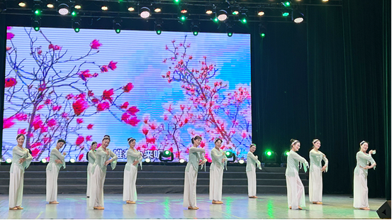 晚会以潜江市爱舞者艺术团的大型舞蹈《万紫千红》拉开序幕,演员们身着绚丽服饰,舞步轻盈灵动,尽显银发群体精神风貌,点燃全场热情。随后,各类节目轮番登场、异彩纷呈:舞蹈《我们的新时代》跳出岁月豪情,旗袍秀《家和万事兴》彰显东方韵味,潜江民歌《打花哪吧》饱含乡土情怀,戏曲、器乐、时装秀等形式交替呈现,让观众目不暇接。