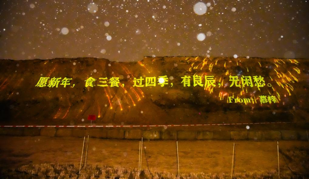 跨年夜,市民们的新年愿望通过投影,映射在亳都·新象东侧的商代城墙上。(受访者供图)
