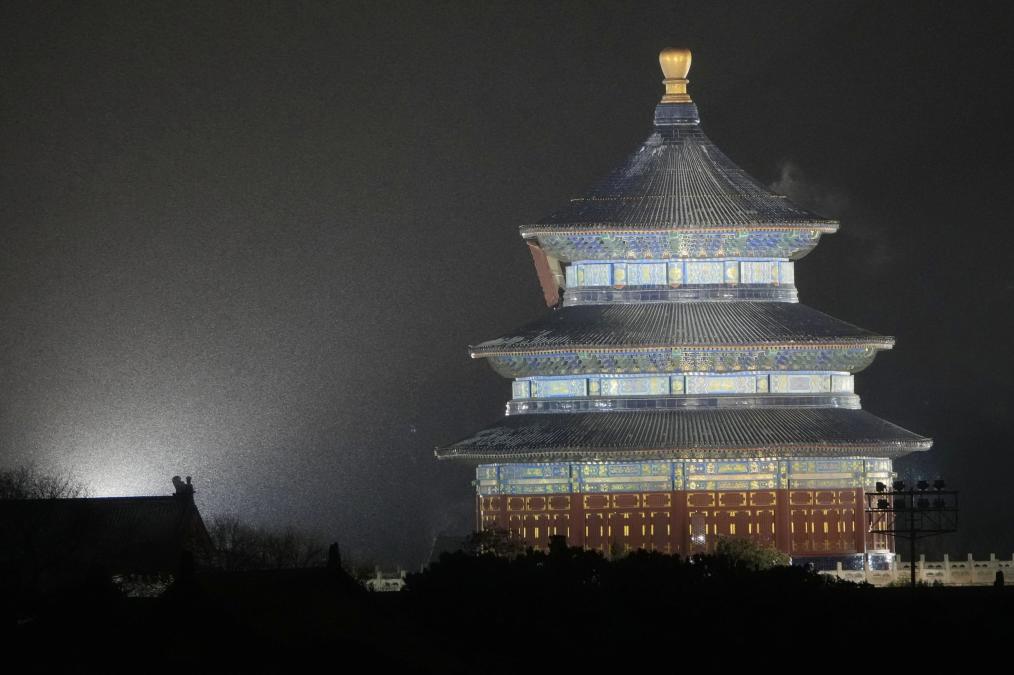 雪中的北京天坛公园祈年殿(1月17日摄)。 新华社记者 鞠焕宗 摄