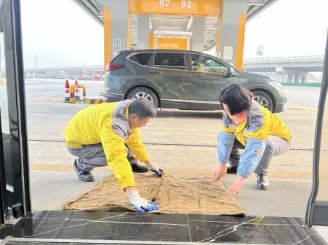 在环境整治方面,各站提前对收费广场、连接匝道及排水沟进行了全面清理,确保融雪后积水能迅速排出,避免因积水二次结冰。在站区坡道、台阶等易滑处,防滑垫和警示标识已铺设、设置完毕。站内还专门组织了冬防除冰扫雪动员与演练,明确人员编组、责任分区与响应流程,以提升现场快速处置与协同保障能力。