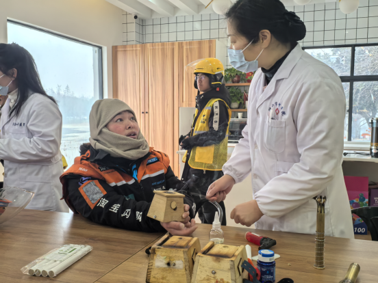 中医理疗服务区内,市中医院志愿者搭建临时服务台,提供推拿按摩、穴位按压、中医养生咨询等服务,针对新就业群体因长期骑行引发的肩颈酸痛、关节不适等问题,精准给出调理建议并开展现场舒缓服务,切实呵护他们的身体健康。