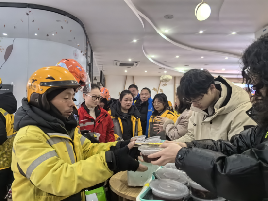 腊八仪式感拉满,温情直抵人心。工作人员为现场每位青年代表送上热气腾腾的腊八粥,软糯香甜的粥品驱散了冬日寒意,更传递出深厚的节日关怀。“早上还没来得及吃早餐,工作间隙能喝到热粥,心里特别暖。”手持粥碗的外卖员们满脸感动地说。