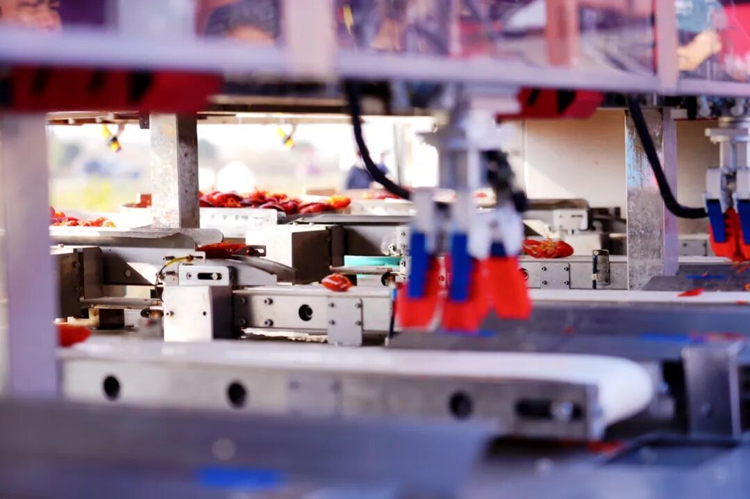 从“一虾鲜”到“全链强”,潜江对龙虾产业的挖掘从未止步。在湖北省睿峰智控设备制造有限责任公司车间,一条装有AI仿生机械臂的生产线,平均1.7秒即可完成一只小龙虾的精准剥壳,成品率达98%,破解了行业用工难、成本高的顽疾;总口管理区小龙虾生物质(虾壳)高值化利用项目即将投产,百吨收购价约3万元的虾壳,可提炼出每吨10万至30万元的壳聚糖、壳寡糖等高附加值产品,实现“点壳成金”的价值跃升。