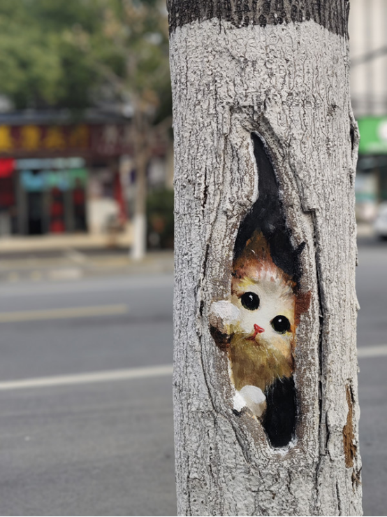 “以前走路从没留意过这些树洞,现在整条街都变得活泼又治愈,像走进了露天画廊。”带着孩子路过的市民李女士笑着说,生动的画作不仅美化了环境,更给孩子的日常出行带来意外惊喜,让亲子散步多了一份发现美的乐趣。不少市民表示,这种生态保护与艺术创作相结合的形式,贴心又新颖,让城市角落充满了烟火气与人文温度。