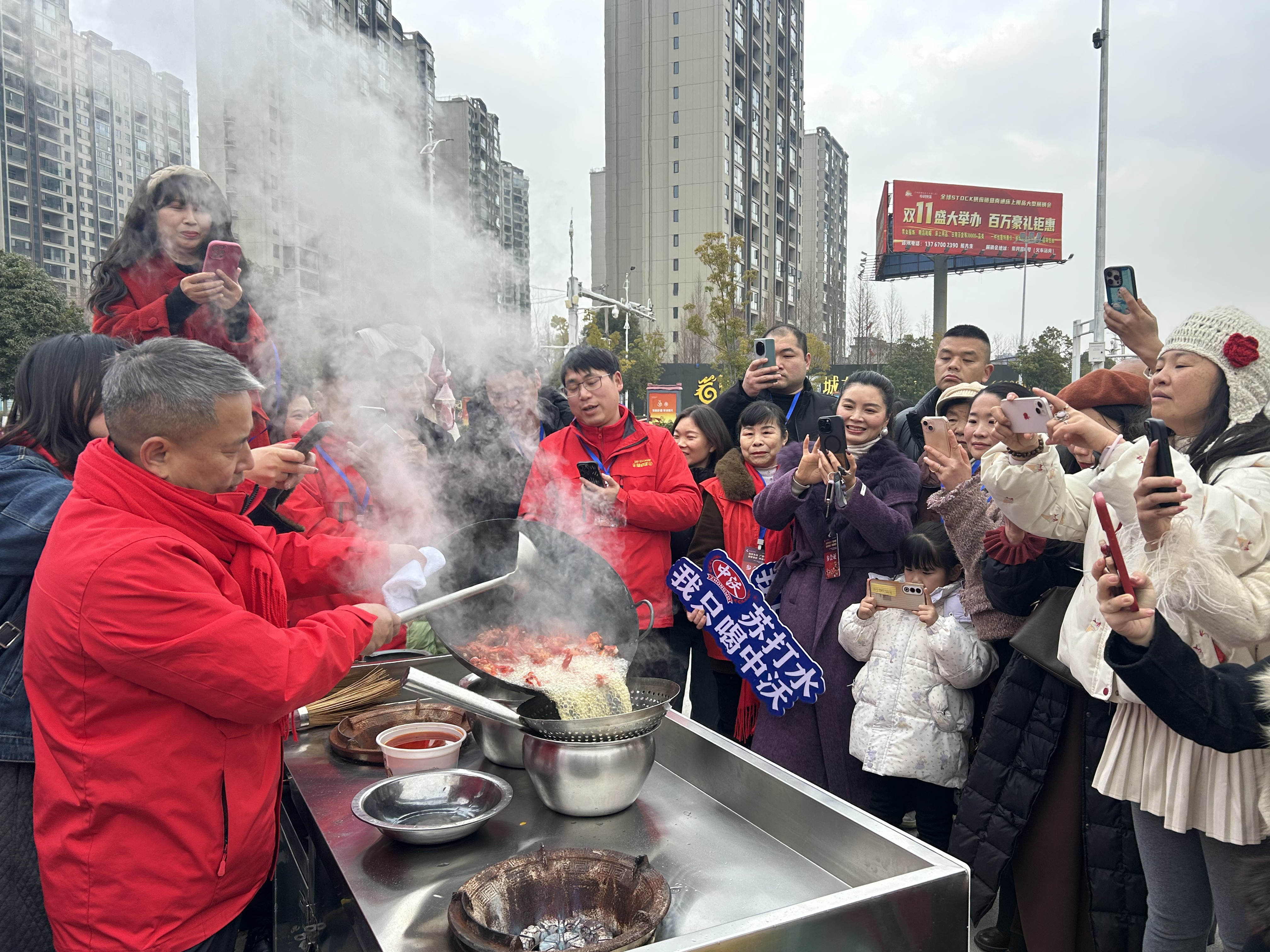 活动现场播放主题宣传片,发布“潜江龙虾团年宴”专属菜单,油焖大虾、蒜蓉冬虾等十余道精品龙虾菜品被赋予“红红火火”“团团圆圆”等吉祥寓意。与会嘉宾观看了冬季烧虾工艺和舞狮表演,在团年宴上品鉴特色美食,围绕龙虾产业升级、品牌塑造等话题交流。