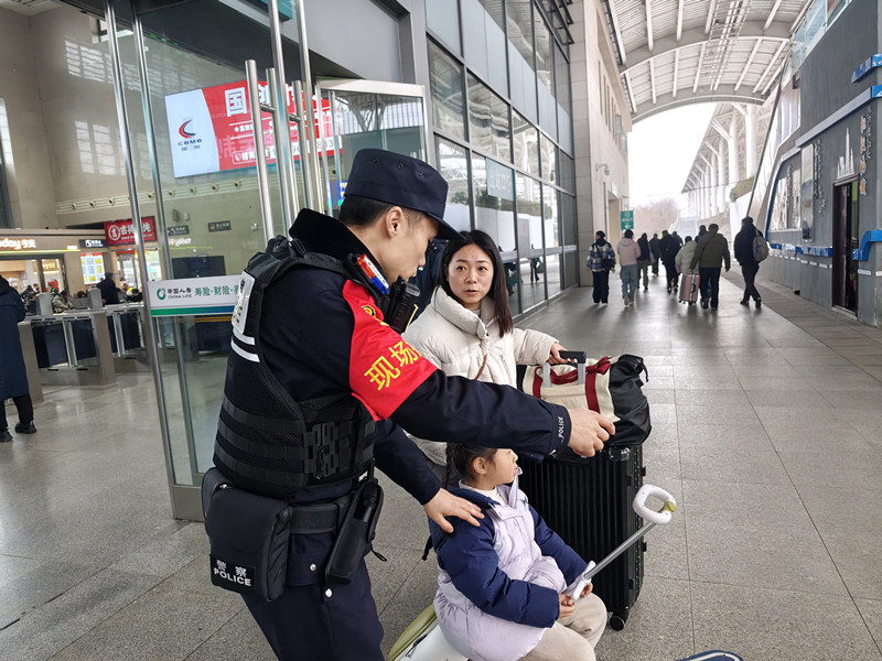 筑牢安全防线,守护旅客平安出行。襄阳铁路公安处潜江站派出所民警在候车大厅常态化开展安全宣传,通过张贴海报、现场讲解等形式,提醒旅客通过车站售票窗口或12306官方平台购票,警惕购票诈骗。安检口处,工作人员严格排查烟花爆竹等易燃易爆物品,细致开展安检工作,反复叮嘱旅客看管好个人行李物品。“旅途中要牢记‘不轻信、不透露、不转账’,守好自己的‘钱袋子’。”民警的温馨提示,让过往旅客倍感安心。