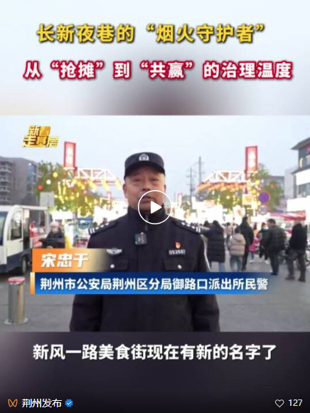 “三长共治”成效显著:2025年,长新夜巷的纠纷警情下降97.6%,打架斗殴实现“零发生”。曾经的“矛盾焦点”成了城市的“文明窗口”和来荆游客必来的“网红打卡地”。
